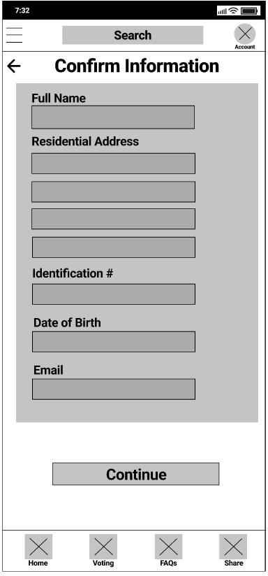 The main flow focus of this project was allowing users to register to vote for upcoming elections. In addition to the design, research was conducted to create user personas, user journeys, and competitive audits while also performing usability studies.