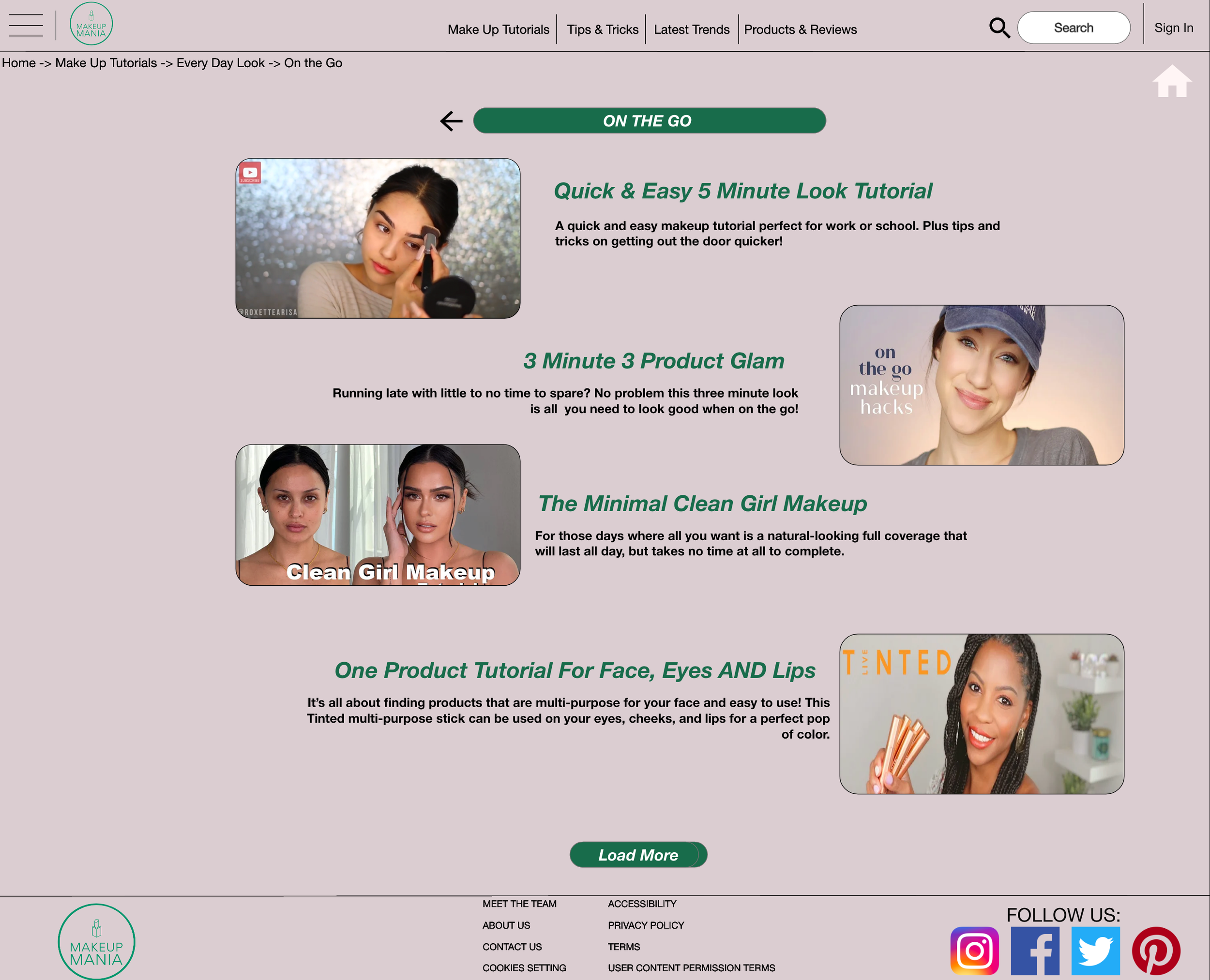 Makeup Tutorials - Easy to navigate with minimal tabs - Cluttered homepage and other tabs